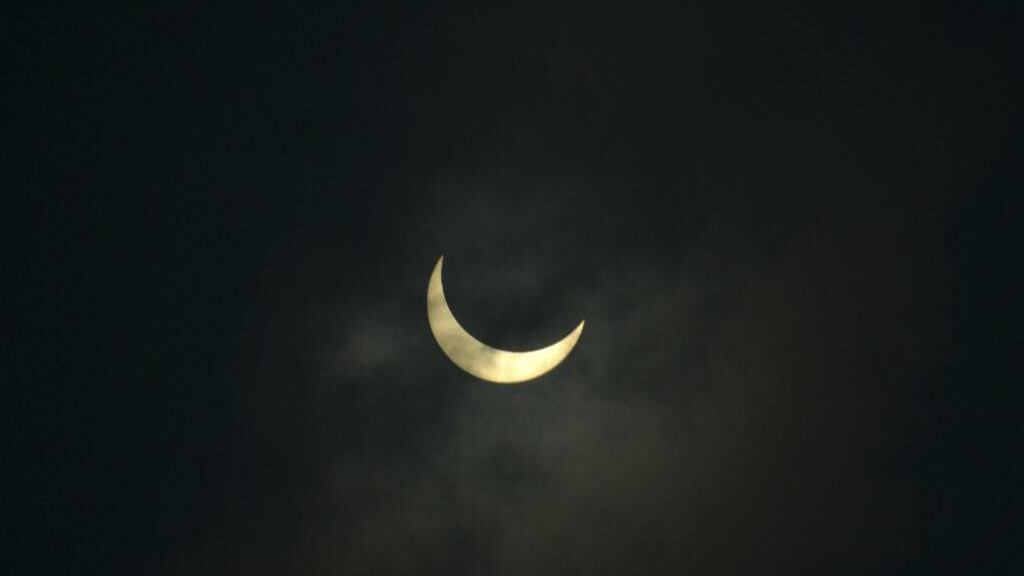 Expertos y aficionados del espacio en África y Asia pudieron contemplar este domingo, en pleno solsticio de verano, un eclipse solar del tipo "círculo de fuego" pese a las condiciones climáticas poco favorables para apreciarlo.