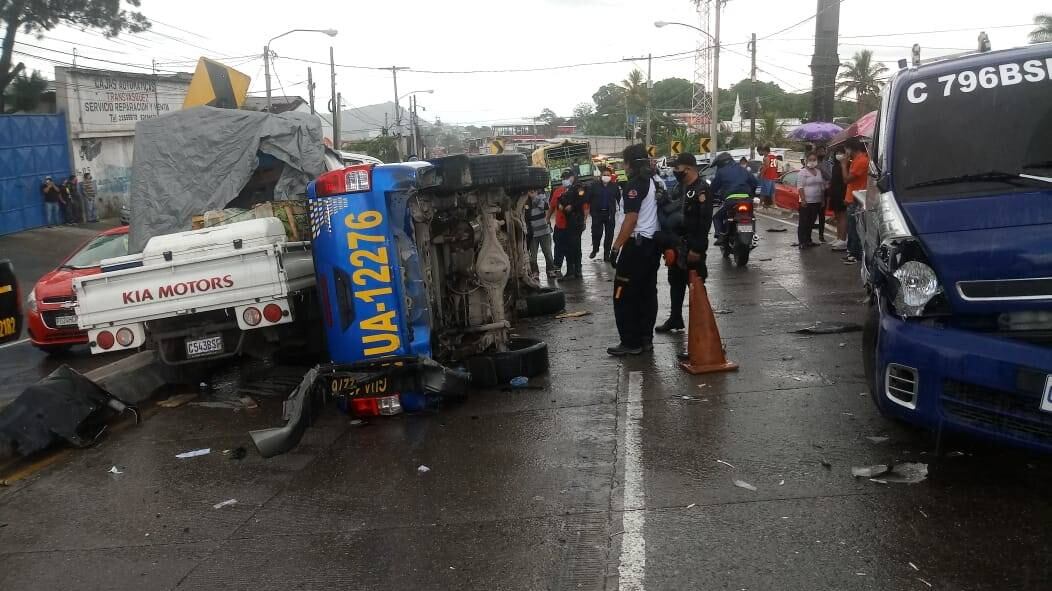 Al menos seis vehículos se vieron involucrados en el percance vial, incluida una autopatrulla de la Policía Nacional Civil (PNC).