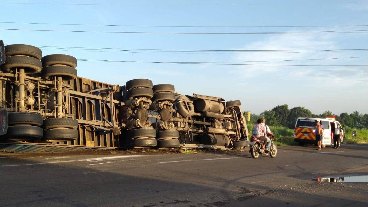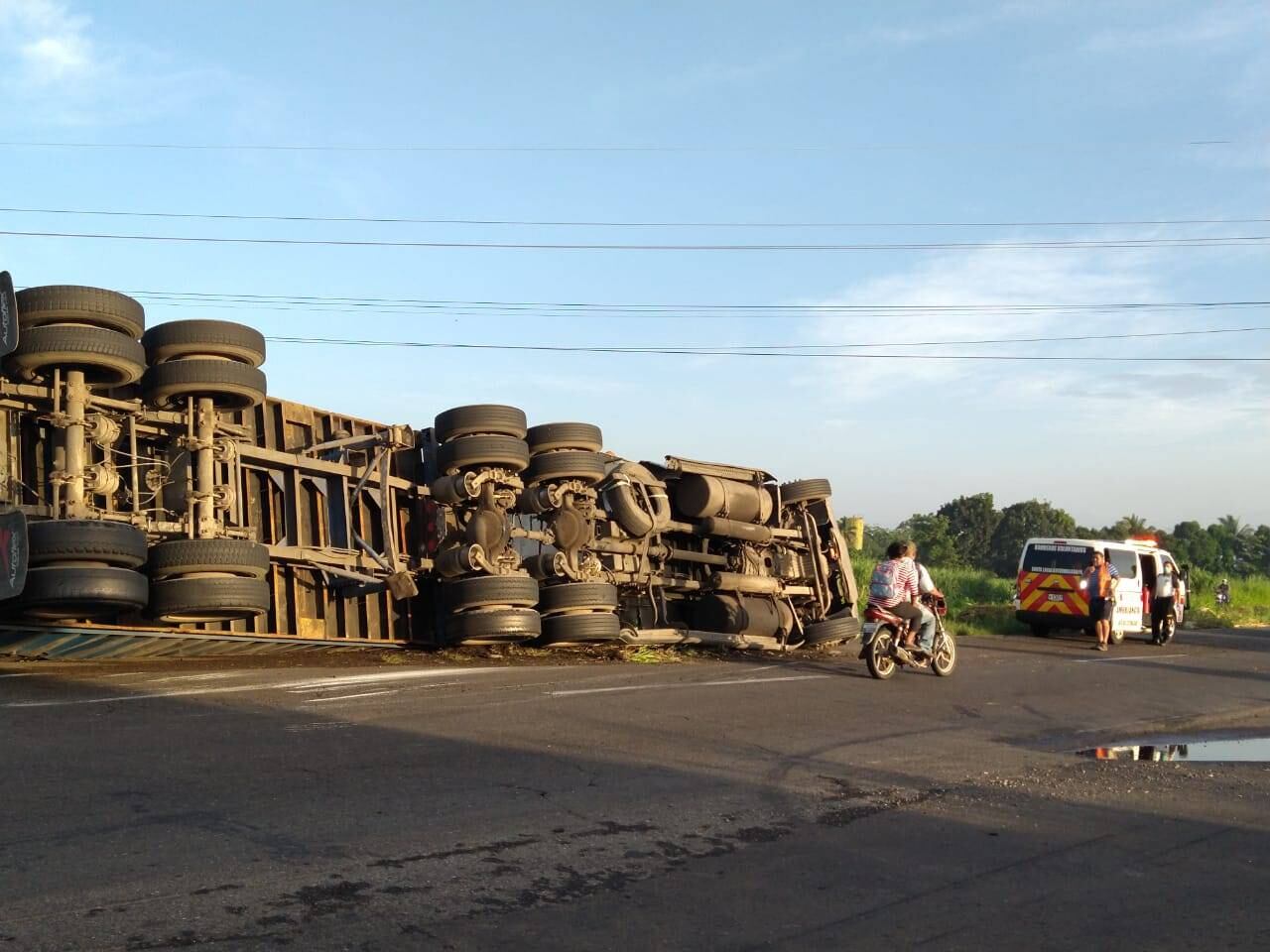El piloto de un tráiler volcó cuando se movilizaba por el kilómetro 90, en jurisdicción de Santa Lucía Cotzumalguapa, en Escuintla.