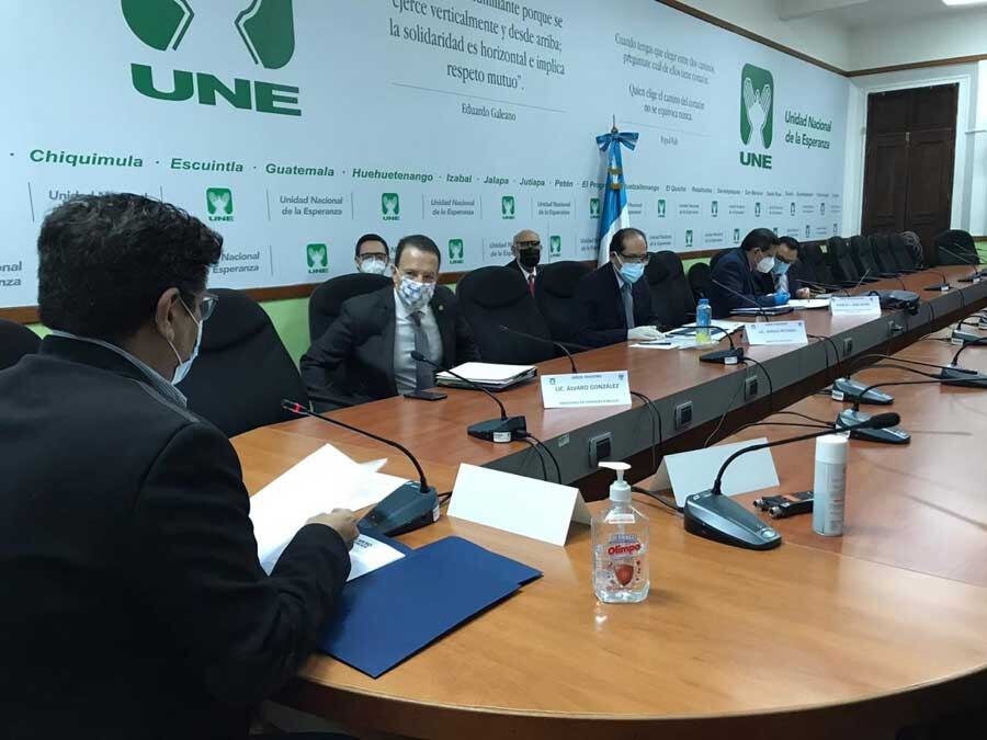 El titular de la Superintendencia de Administración Tributaria (SAT), Marco Livio Díaz, acudió a una citación realizada por la bancada de la Unidad Nacional de la Esperanza (UNE), acompañado del presidente del Banco de Guatemala, Sergio Recinos; y del ministro de Finanzas Públicas, Álvaro González Ricci.