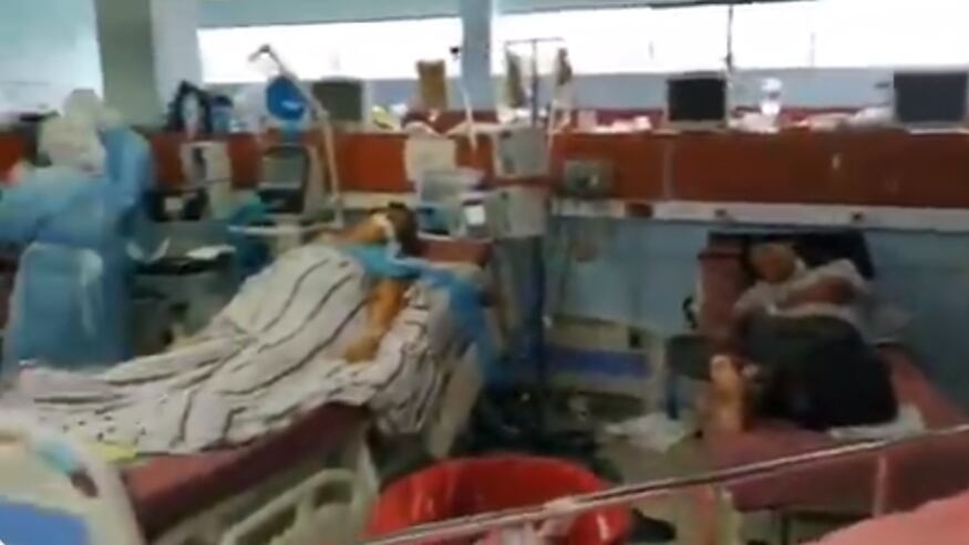 En otra parte de este centro asistencial permanecen pacientes en donde los médicos les proveen de oxígeno.