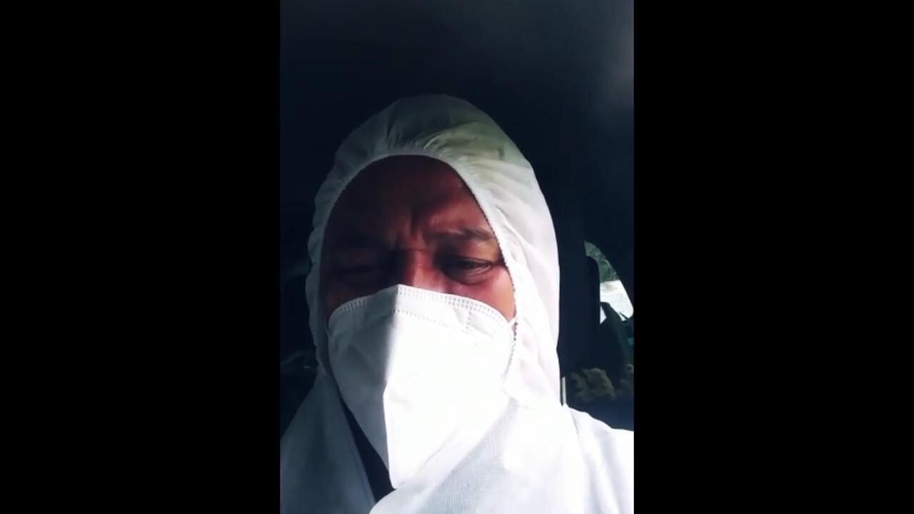 Con un traje especial y mascarilla, debido a las medidas preventivas ante la emergencia del coronavirus. “¡Qué triste ver a mi madre en una bolsa, meterla en una caja y ahora va para el hoyo!”, agregó.