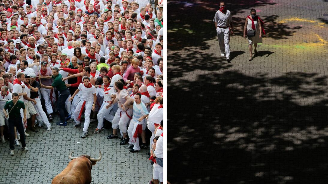 A principios de julio suele haber una celebración con raíces históricas en Pamplona, situada en el norte de España. Sin embargo, las calles de la ciudad lucen vacías ahora, ya que el Festival de San Fermín fue cancelado a principios de este año debido a la pandemia de Covid-19. Las corridas de toros, criticadas regularmente por los activistas de los derechos de los animales, atraen anualmente a miles de personas de todo el mundo.