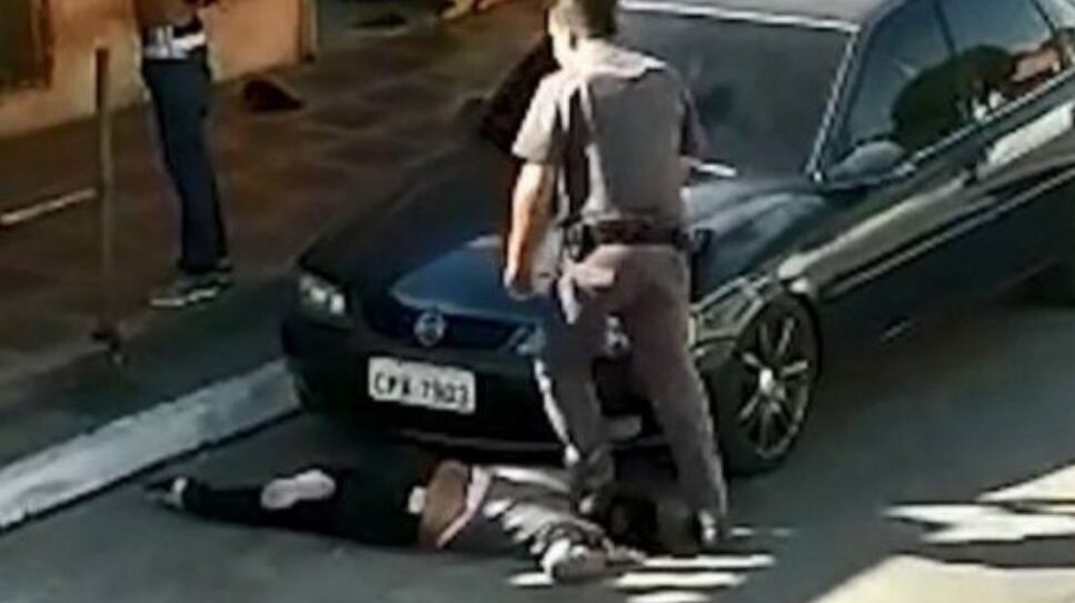 El video muestra, además, cómo el uniformado, miembro de la Policía Militar (PM, un cuerpo de mantenimiento del orden que actúa bajo la jurisdicción de cada Estado), arrastra por el suelo a la víctima para esposarla.