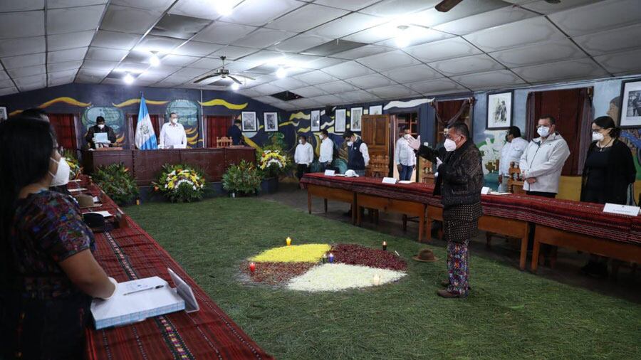 El presidente de la República, Alejandro Giammattei, acudió a Sololá para sostener una reunión con las autoridades de la Municipalidad Indígena de ese departamento.