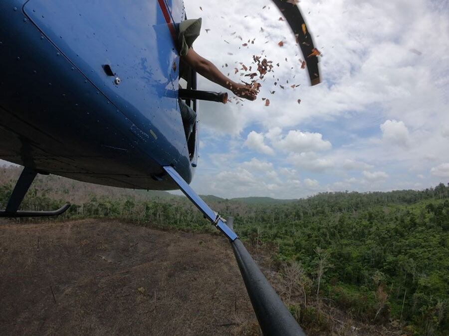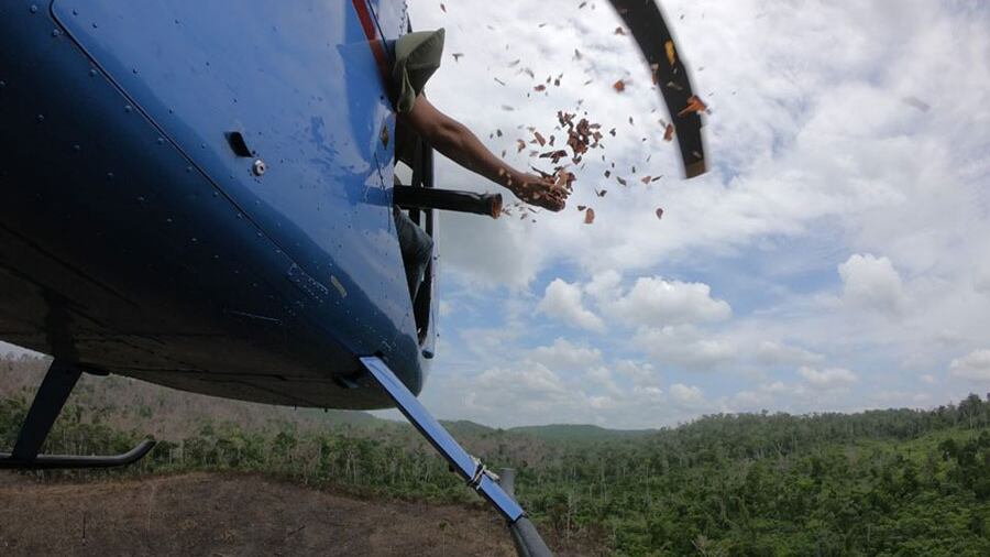 La dispersión aérea se realizó con un helicóptero de la DGAC con unas 250 mil semillas, con lo cual se logrará la restauración y recuperación de dos áreas afectadas por incendios.