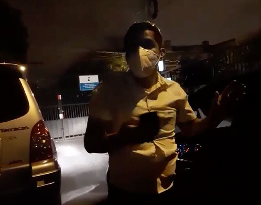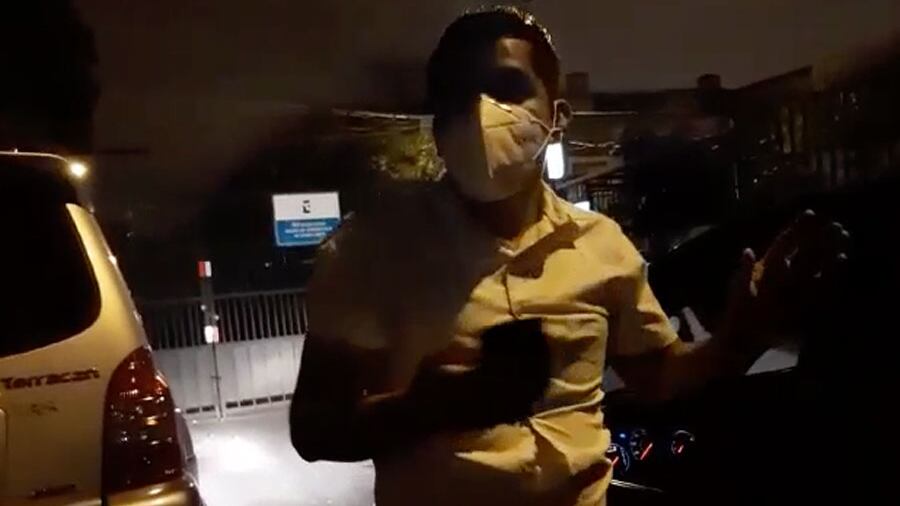 Mientras charla con su celular, lanza improperios en contra de las personas que estarían involucradas en el incidente. Le acusan de estar bajo efectos de alcohol.