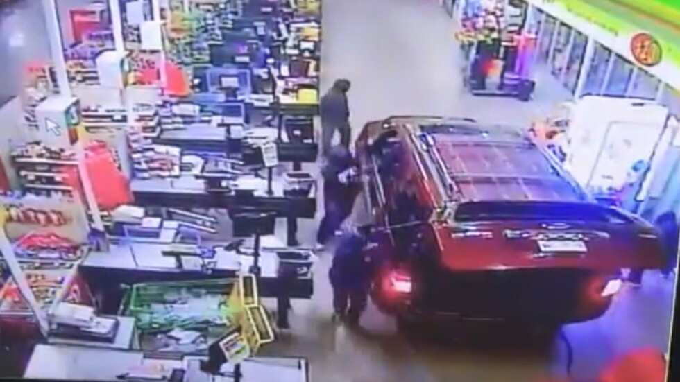 El robo no se llevó a acabo, pues el cable con el que jalaban el cajero se rompió y el vehículo se estrelló en la zona de las cajas registradoras.