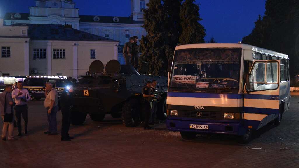“Trece personas en total fueron tomadas como rehenes“, declaró el ministro del Interior, Arsen Avakov, durante una rueda de prensa en Lutsk.