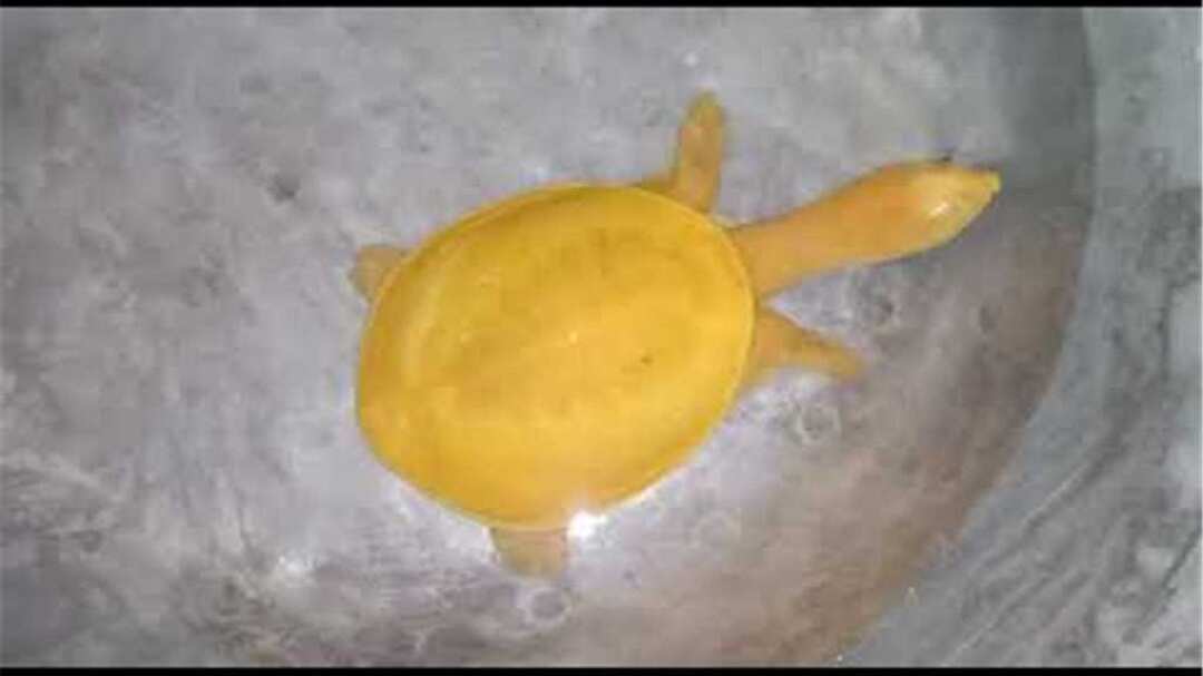 Expertos creen que su peculiar color se debe a una mutación que la convierte en albina. Esta especie de tortugas es común en India, pero su mutación la convierte en un ejemplar muy particular, según dijeron los especialistas.