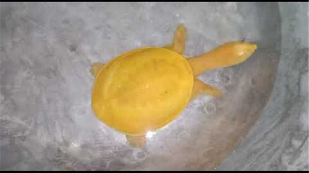 Las autoridades forestales del este de India capturaron el domingo una “extraña” tortuga de color amarillo.