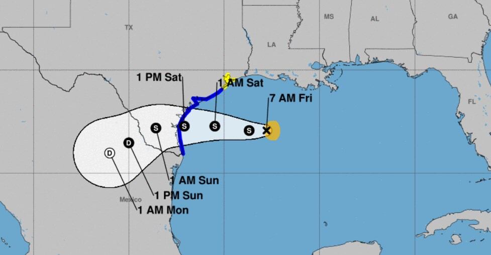 El Centro Nacional de Huracanes (NHC), con sede en Miami, emitió un aviso de tormenta tropical para la zona del delta del Río Grande, donde se pronosticaron fuertes lluvias y marejadas.
