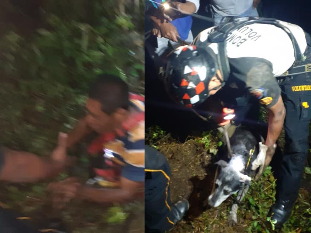 Los Bomberos Voluntarios de San Pedro Carchá en Alta Verapaz por medio de sus redes sociales dieron a conocer que rescataron a un hombre y a su perro, quienes cayeron en un barranco.