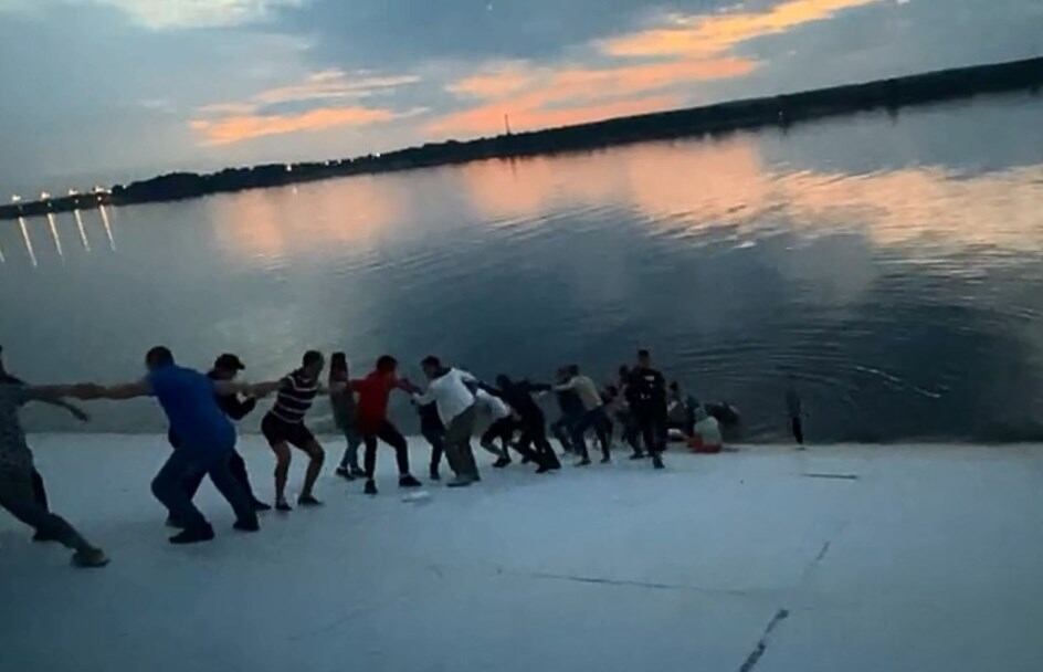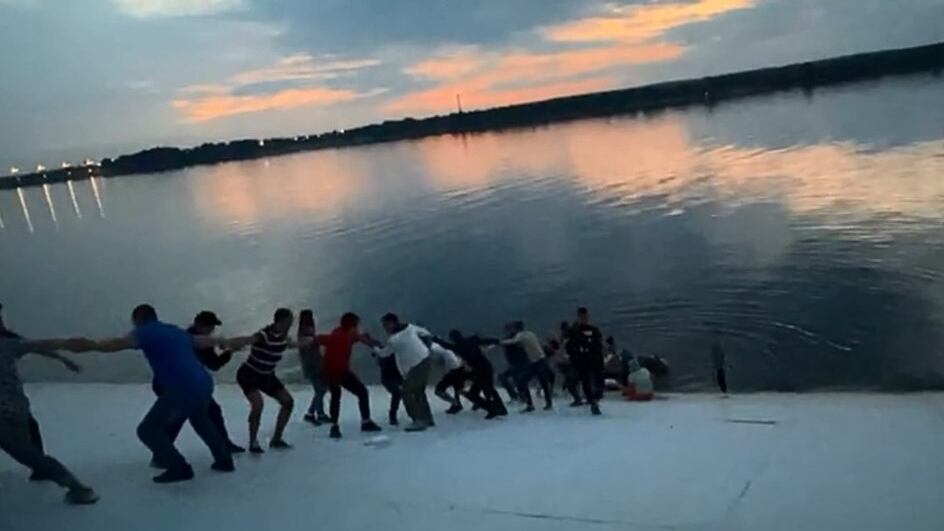 Una mujer se salvó de morir ahogada en un río de la ciudad de Perm, en Rusia, gracias a la ayuda de un numeroso grupo de personas que astutamente formó una cadena humana para alcanzarla y sacarla del agua.