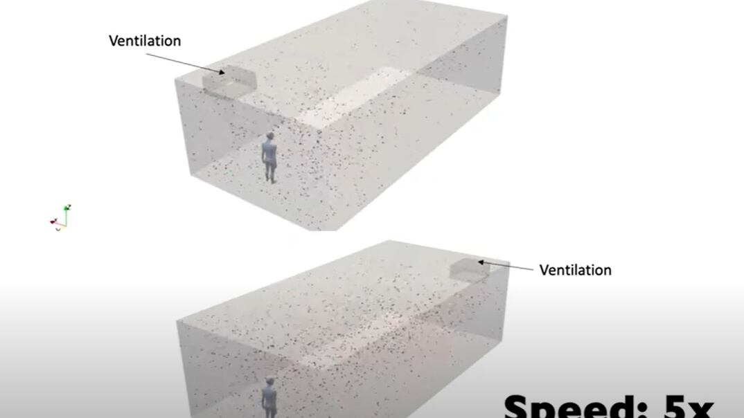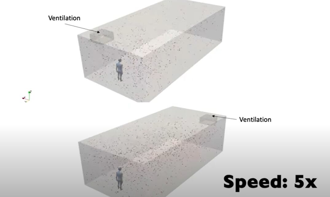 En relación al video, los investigadores de ingeniería mecánica de la Universidad de Minnesota destacaron acerca de cómo el virus SARS CoV-2 viaja a través de aerosoles en interiores.