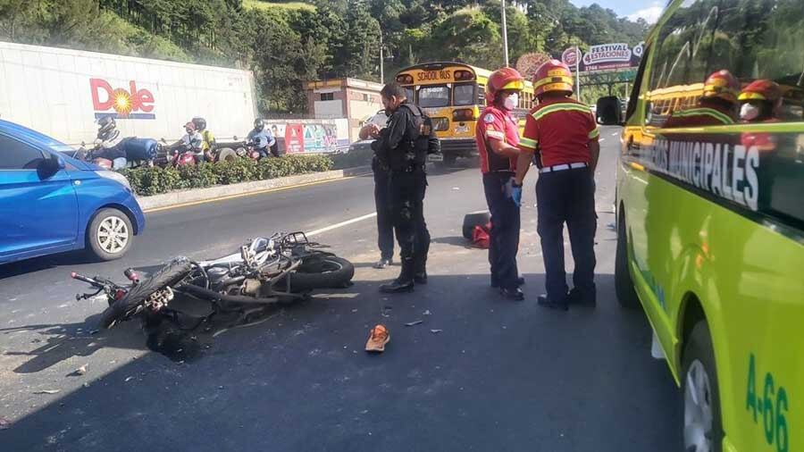 La Policía Municipal de Tránsito de Villa Nueva informó que el motociclista impactó contra otros dos vehículos y murió instantáneamente.