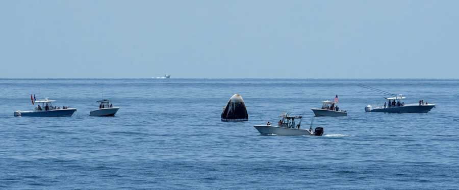 Docenas de naves comerciales rodearon el área donde la cápsula del Dragón de la Tripulación de SpaceX se estrelló en el golfo de México, causando confusión mientras los equipos de recuperación trataban de llegar a ella. Los astronautas Bob Behnken y Doug Hurley regresaron en ella a la Tierra después de realizar el primer vuelo espacial comercial tripulado de la historia.