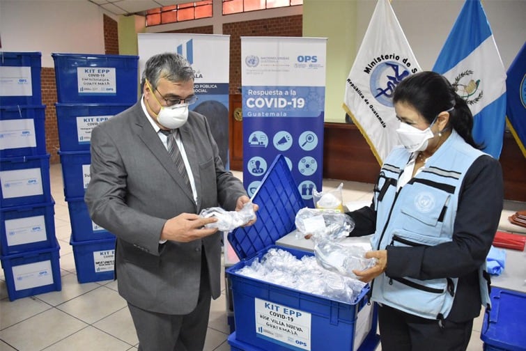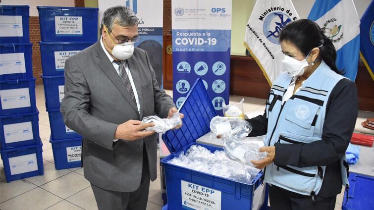 Por medio del Programa Conjunto de la Organización de las Nacionales Unidas (ONU) y la Organización Panamericana de la Salud/Organización Mundial de la Salud (OPS/OMS) se realizó un donativo en equipo de protección para profesionales de la salud en Guatemala.