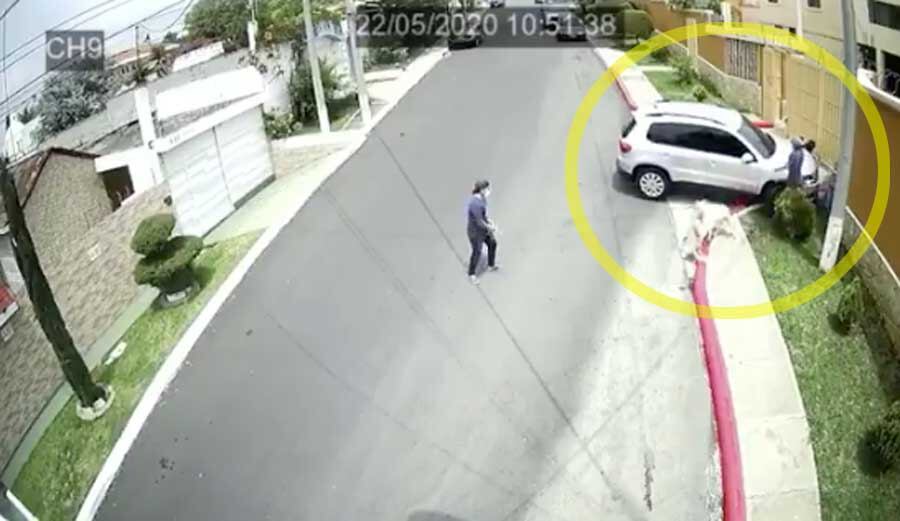 Cuando la pareja se dispone a ingresar al condominio, deciden detenerse a pocos metros de la garita debido a que cuando regresaban de un hospital se percataron de que eran perseguidos por un vehículo marca BMW.