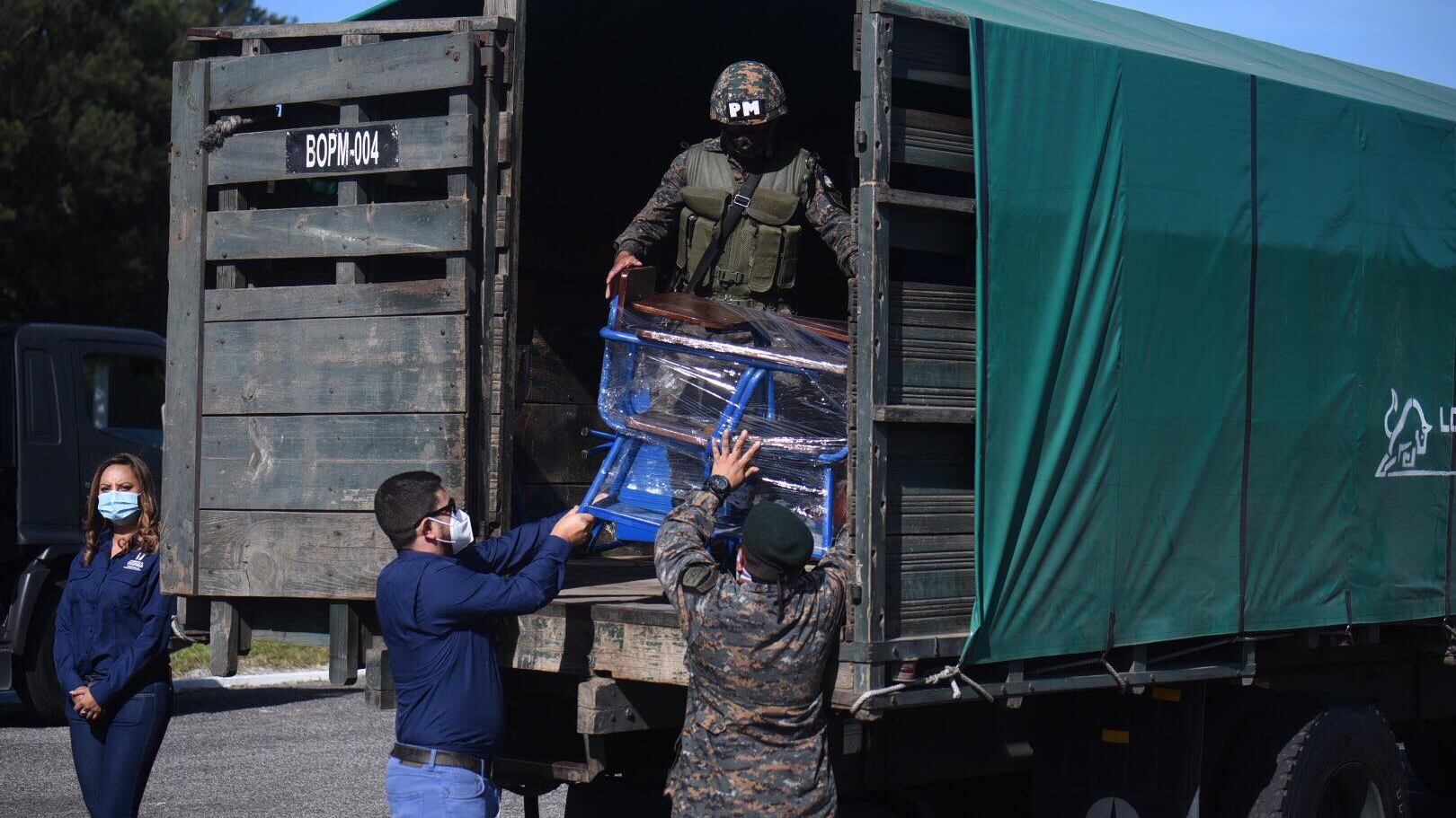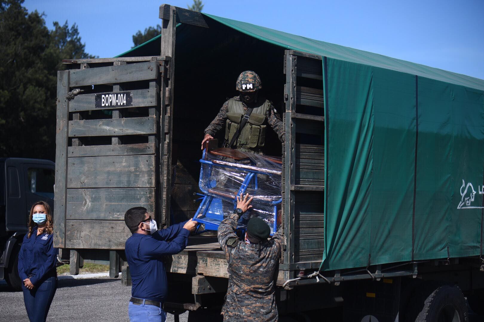 El inmobiliario será trasladado a 25 direcciones departamentales de educación en camiones del Ejército para llevarlos a las 278 establecimientos considerados como prioritarios, se añadió.