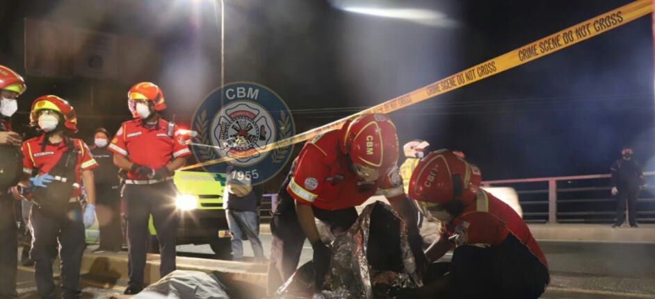 Dos personas murieron anoche tras sufrir un accidente de tránsito cuando se movilizaban por el puente Belice, en dirección a la zona 1 capitalina.