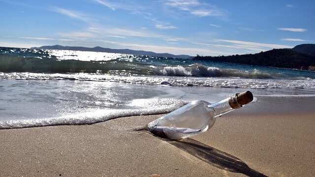 Durante su caminata buscando conchas entre la arena, la pequeña avistó un inusual objeto semienterrado; cuando avisó a sus padres, estos notaron que se trataba de una botella de color marrón, sellada con un corcho, en cuyo interior había una nota.