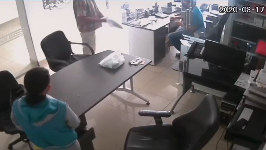 Una cámara de seguridad captó el insólito momento en el que un ladrón intentó, sin éxito, asaltar una funeraria en el municipio de Caldas, en el departamento colombiano de Antioquia.