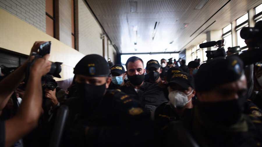 Tras llegar a la frontera con Guatemala, el exministro llegó a la Fuerza Aérea Guatemalteca, para ser trasladado a la Torre de Tribunales para ser presentando ante el juzgador.