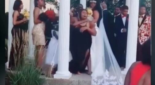 Se trata, al parecer, de la hija de la novia, quien le grita a la mujer:
