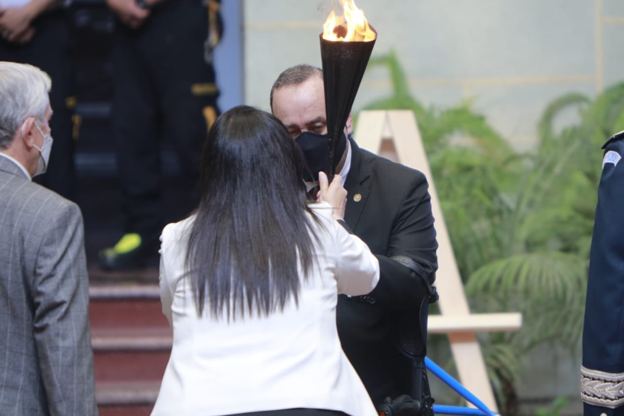 Fue el presidente Giammattei con la titular de la Corte Suprema de Justicia (CSJ), Silvia Valdés, y la representante del Congreso, Sofía Hernández, quienes encendieron el fuego patrio.