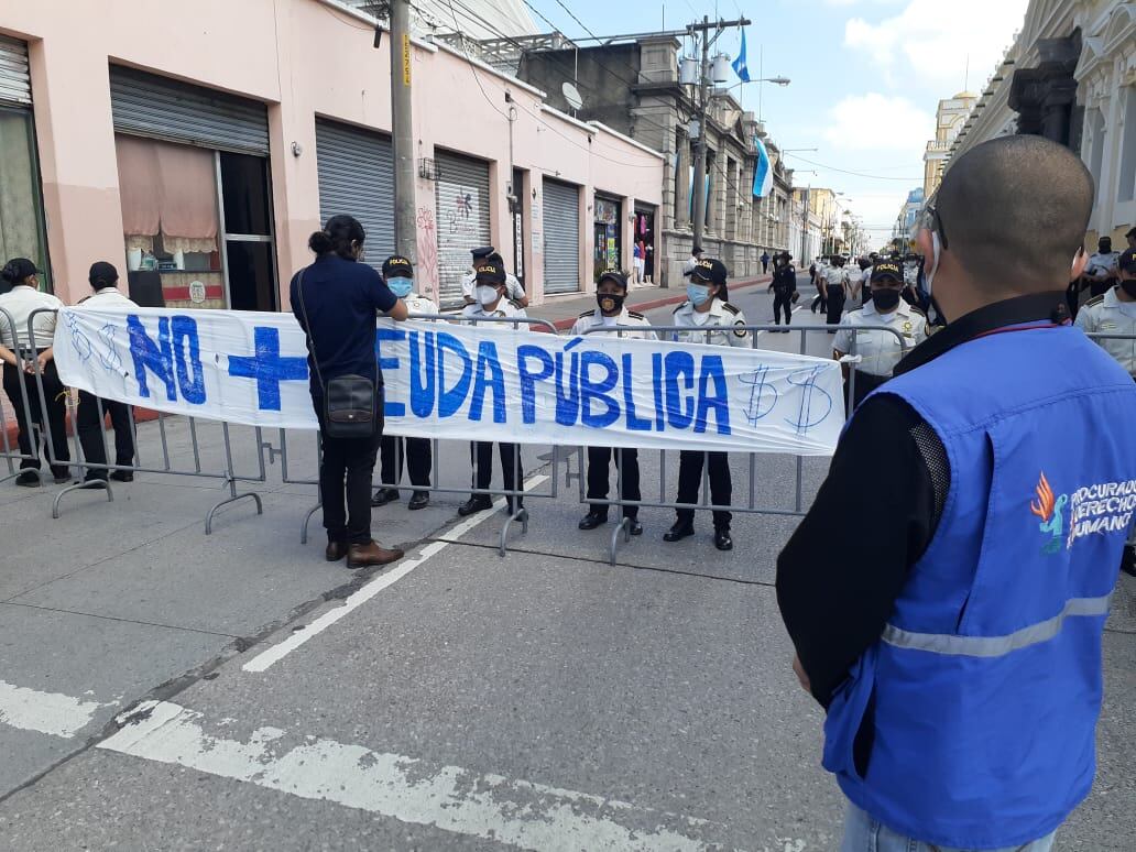 Delegados de la Procuraduría de los Derechos Humanos (PDH) verifican las garantías fundamentales de quienes protestan afuera del Congreso de la República.