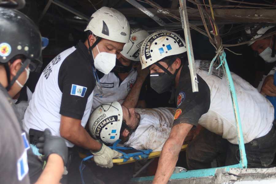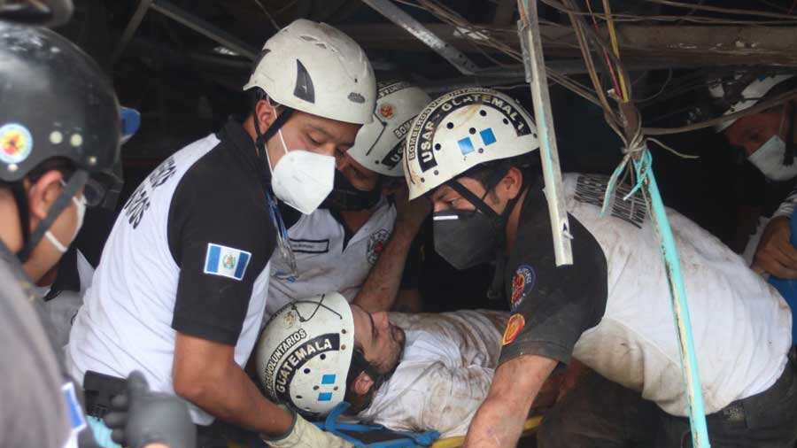 Elementos de los Bomberos Voluntarios y Bomberos Municipales rescataron a varias personas que habían quedaron soterradas en la 27 calle final 37-50 sobre la calzada La Paz, rumbo a la zona 16.