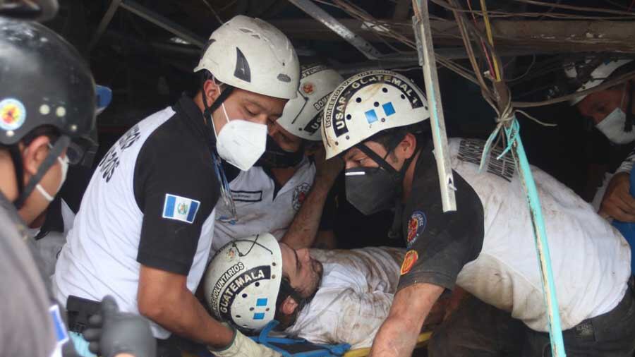 Elementos de los Bomberos Voluntarios y Bomberos Municipales rescataron a varias personas que habían quedaron soterradas en la 27 calle final 37-50 sobre la calzada La Paz, rumbo a la zona 16.