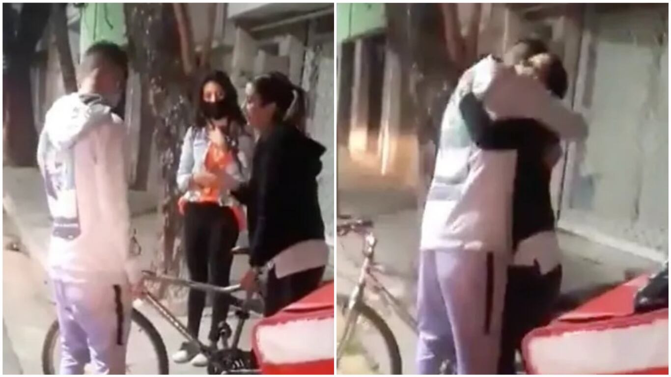 El repartidor, emocionado, no pudo contenerse y se acercó a ella para darle un abrazo en muestra de agradecimiento. El emotivo momento quedó registrado en video y se hizo viral en las redes sociales.
