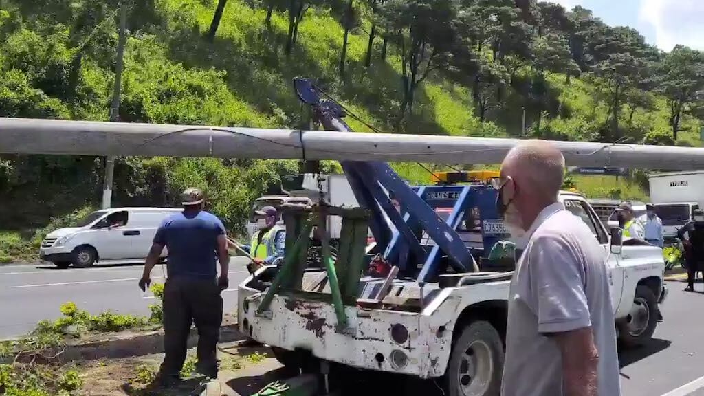 Autoridades de la Municipalidad de Villa Nueva dieron a conocer que el poste quedó sobre el vehículo, lo cual afectó el paso en los sentidos de norte a sur y viceversa.