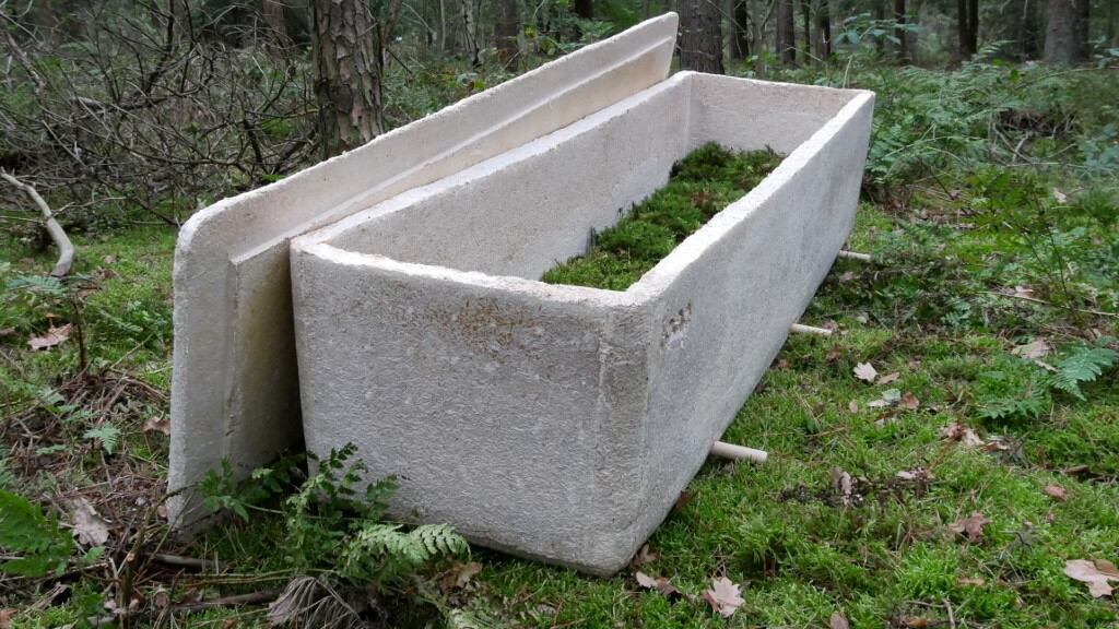 Para fabricarlo, es necesario cavar bajo la turba en el bosque, extraer micelio puro proveniente del hongo, mezclar eso con aserrín de madera, y poner el todo en la horma de un ataúd clásico. Siete días más tarde, todo eso se transforma en un organismo vivo en forma sólida.