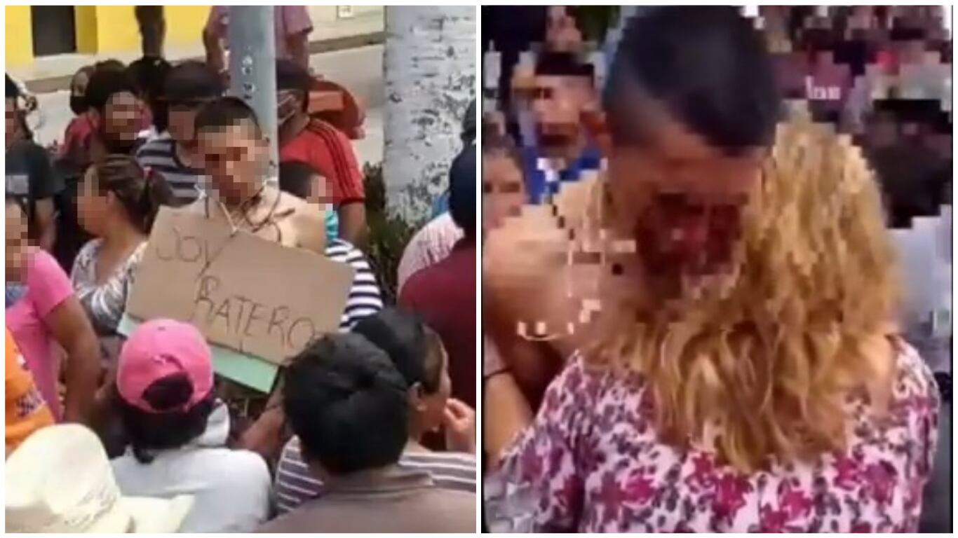 El hombre, a quien le colgaron en el cuello un letrero con la leyenda “Soy Ratero”, permaneció atado por varios minutos, siendo increpado por las personas que se encontraban en el lugar, hasta que una mujer, quien se identificó como la madre del presunto delincuente, se hizo presente para evitar el linchamiento.