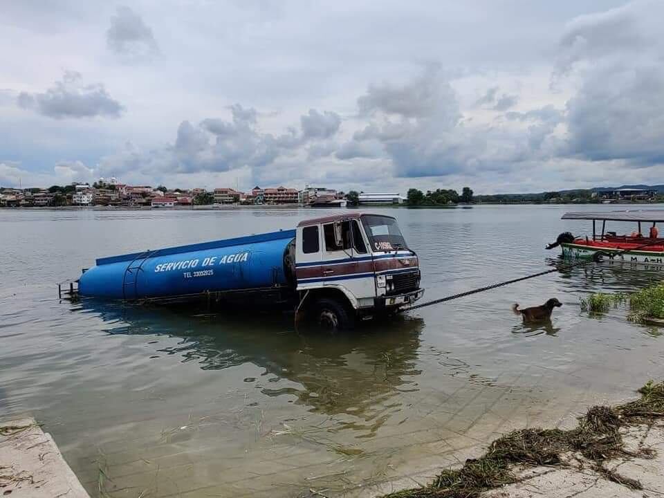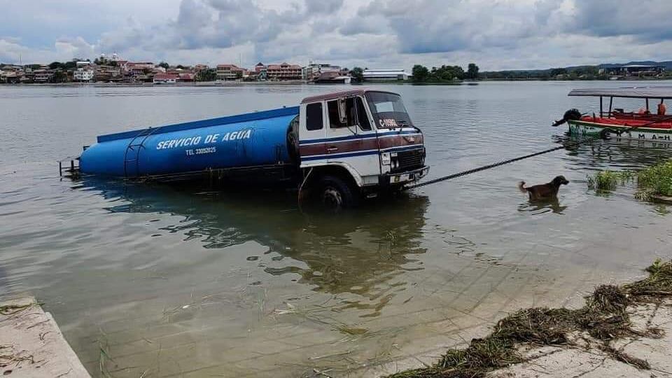 Un camión cisterna cayó accidentalmente en el lago Petén Itza, ubicado en San Benito, en Petén.