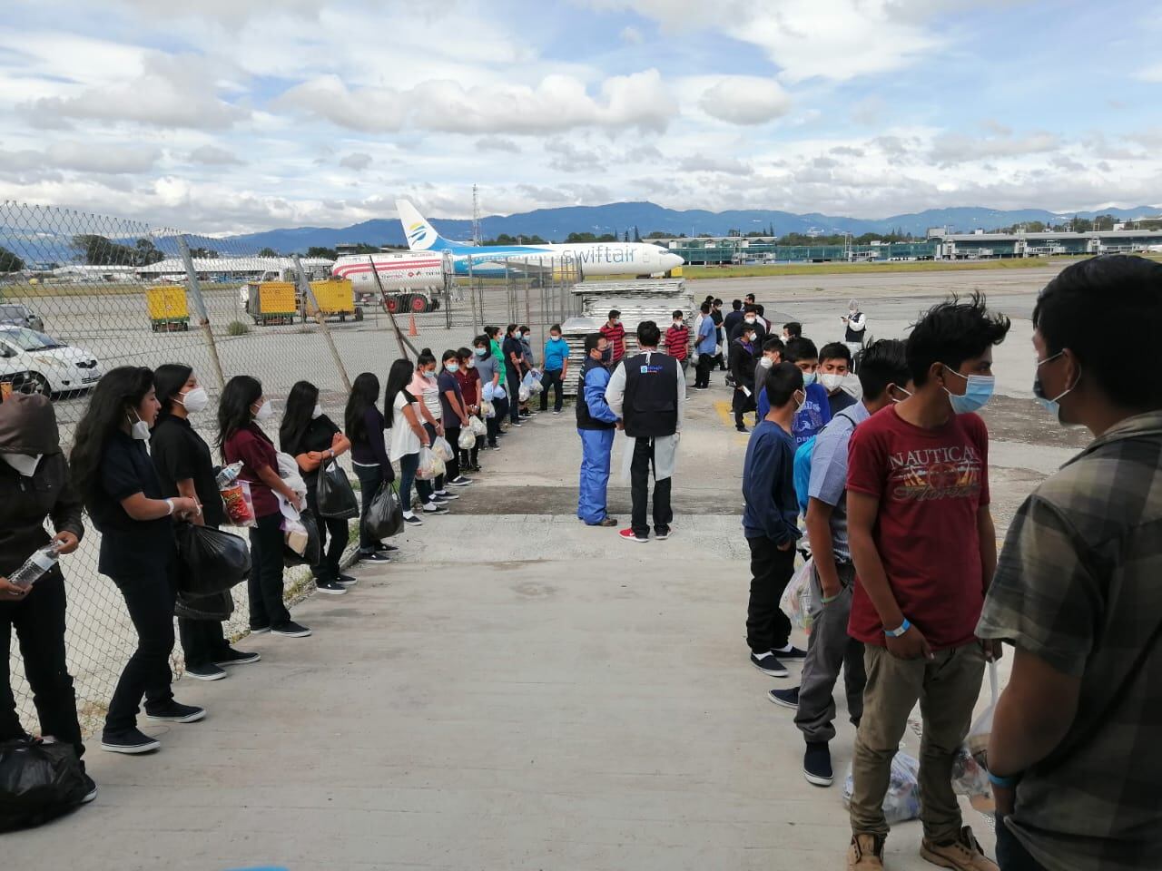 En la Fuerza Aérea Guatemalteca (FAG) aterrizó un vuelo con 42 menores de edad no acompañados.