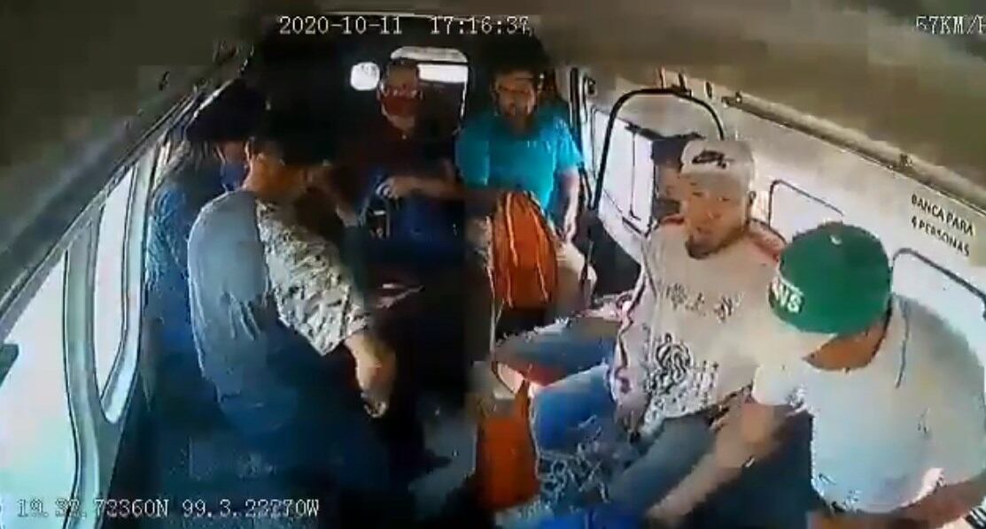 La grabación muestra cómo los dos delincuentes suben a la “combi” (nombre por el cual se le conoce en México a este tipo de microbuses), y por algunos segundos permanecen sentados en el interior de la unidad, haciéndose pasar por simples tripulantes.