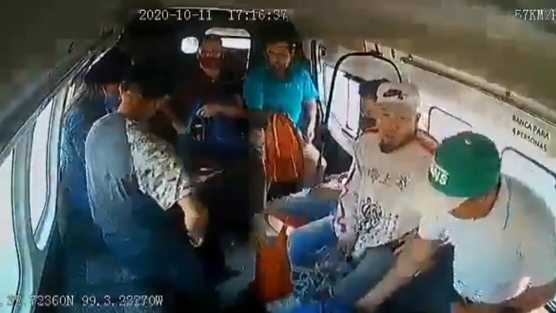 Los otros pasajeros, molestos por haber sido víctimas del asalto, le exigen al chofer que continúe la ruta. “¡Ya jálate!”, le dicen.