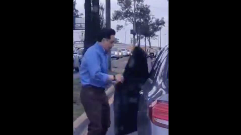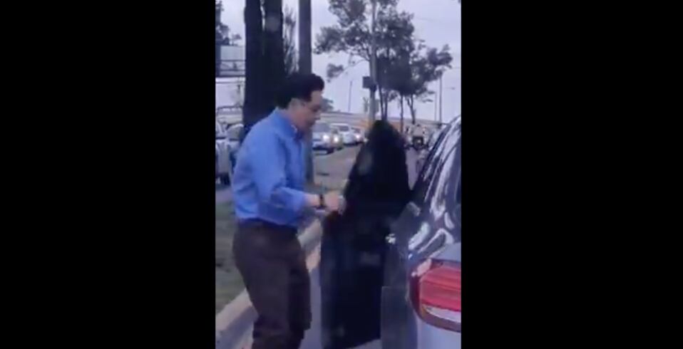 En las imágenes se observa cuando descendió de su vehículo y se dirigió a la parte frontal.