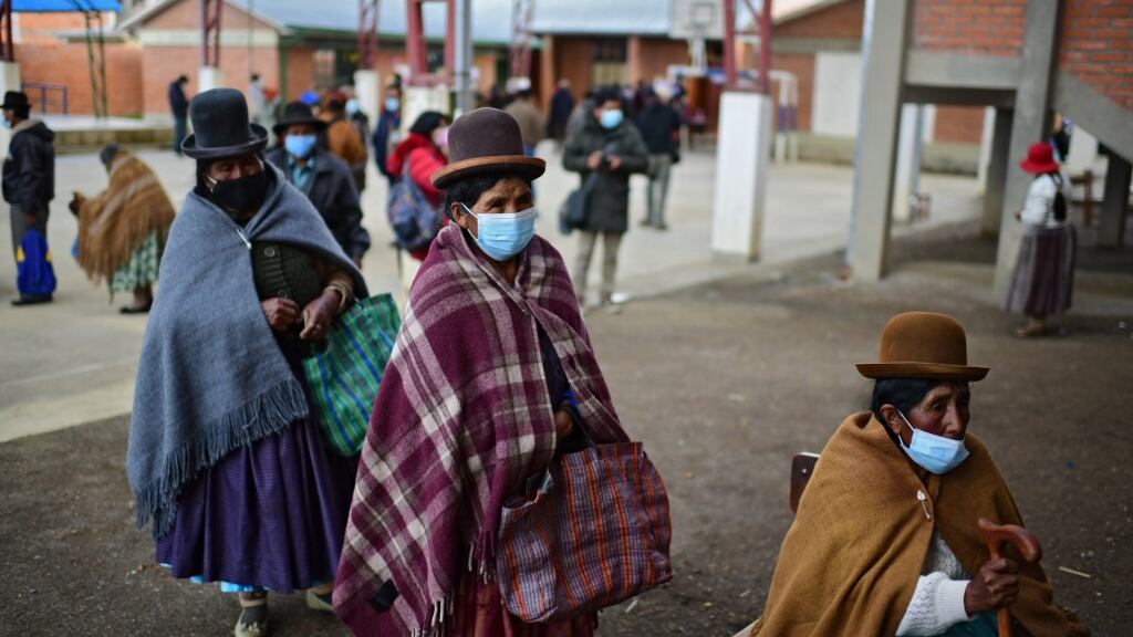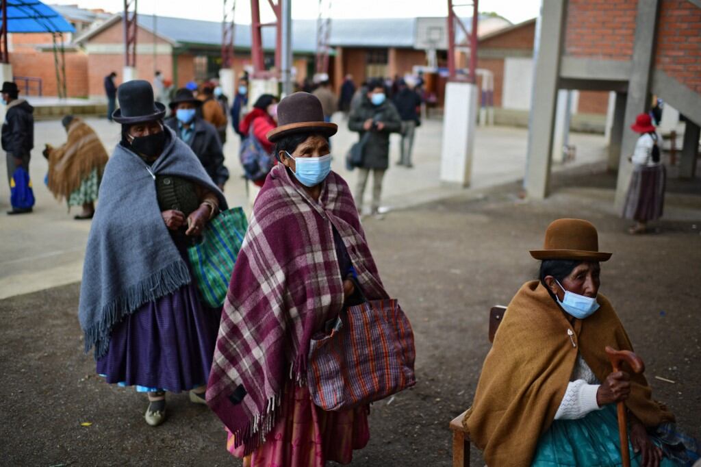 En Bolivia, país con 41 % de población indígena, la gente hizo filas, sentada y con distancia física desde la madrugada, como en Huarina, un poblado a orillas del lago Titikaka a 70 kilómetros de La Paz.