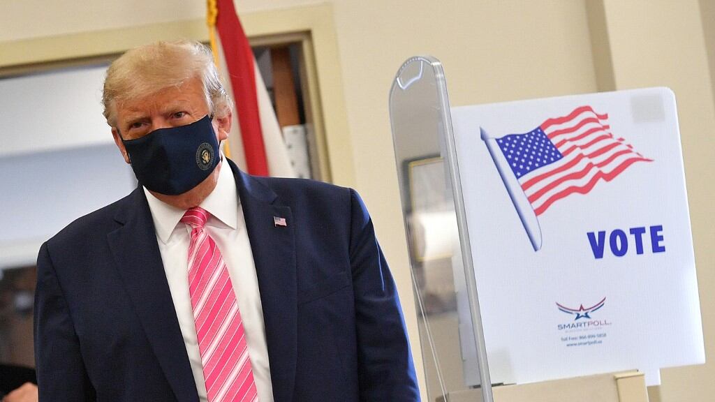Al emitir el voto, Trump, quien ha minimizado el impacto del virus desde el inicio de la crisis sanitaria incluso pese a haberse contagiado, usó una mascarilla, algo que rara vez suele hacer.