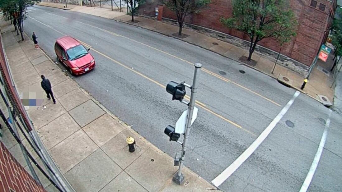 La grabación muestra cómo, mientras la mujer yacía desmayada sobre la acera, un hombre desciende de su vehículo, una miniván de color rojo, rodea el cuerpo y acto seguido roba el teléfono y huye del lugar.