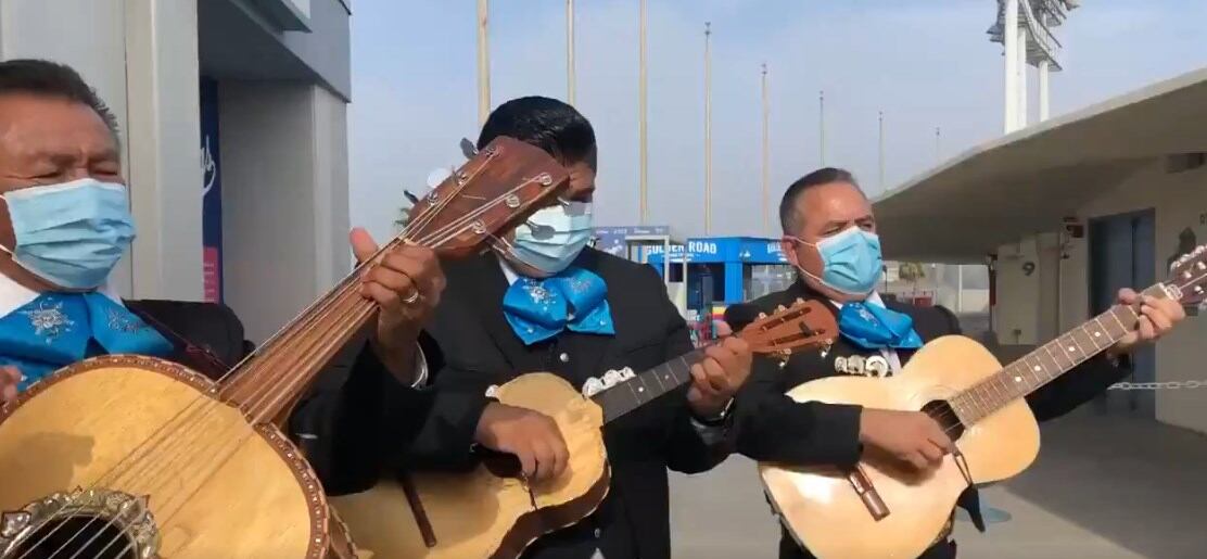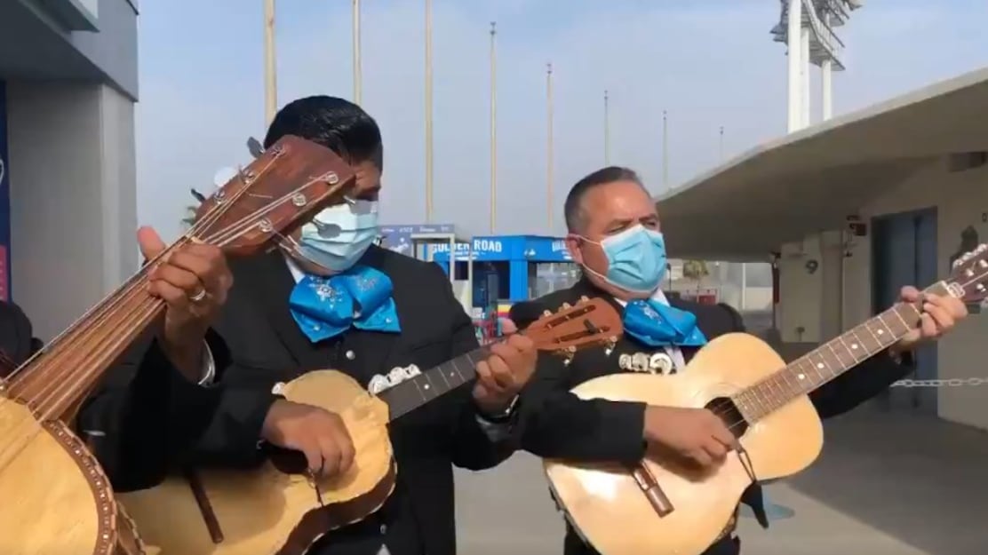 Una banda de mariachis amenizaba la jornada de elecciones en Estados Unidos, específicamente en el estadio de Los Dodgers, en Los Ángeles, ante los votantes que este martes acudían a este centro de votación para elegir entre Donald Trump y Joe Biden.