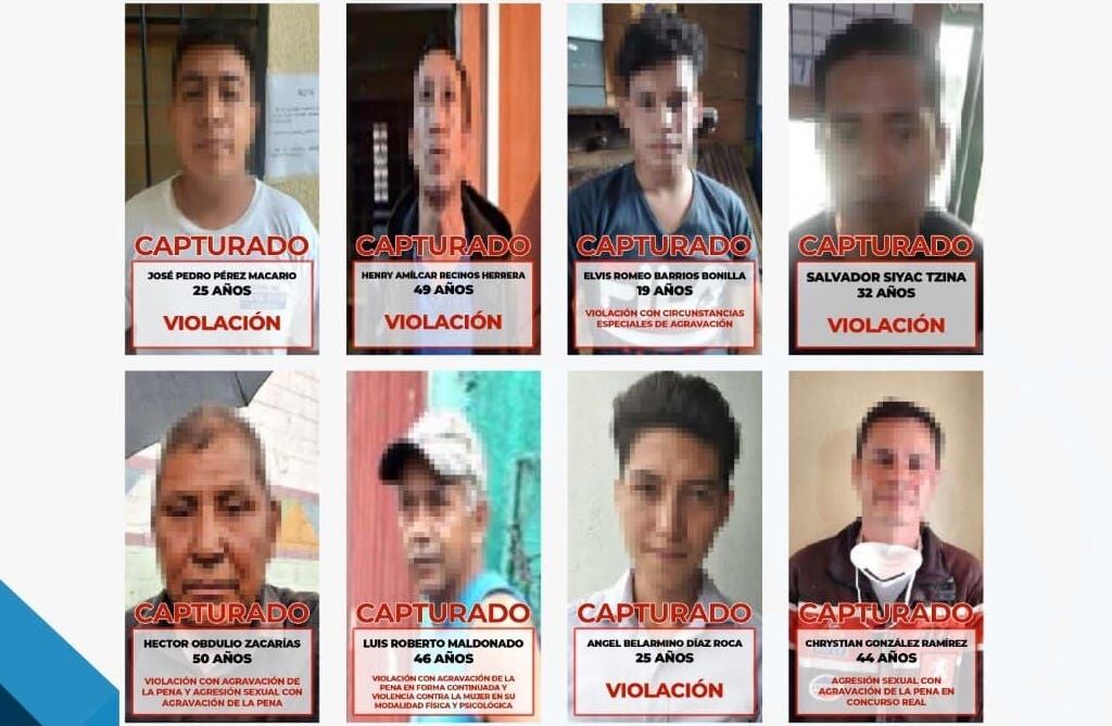 La Policía Nacional Civil (PNC) capturó entre el 1 y 6 de noviembre a ocho hombres señalados por supuestamente haber cometido delitos sexuales. Ese hecho fue destacado por el gobierno de Guatemala.
