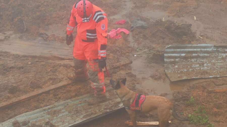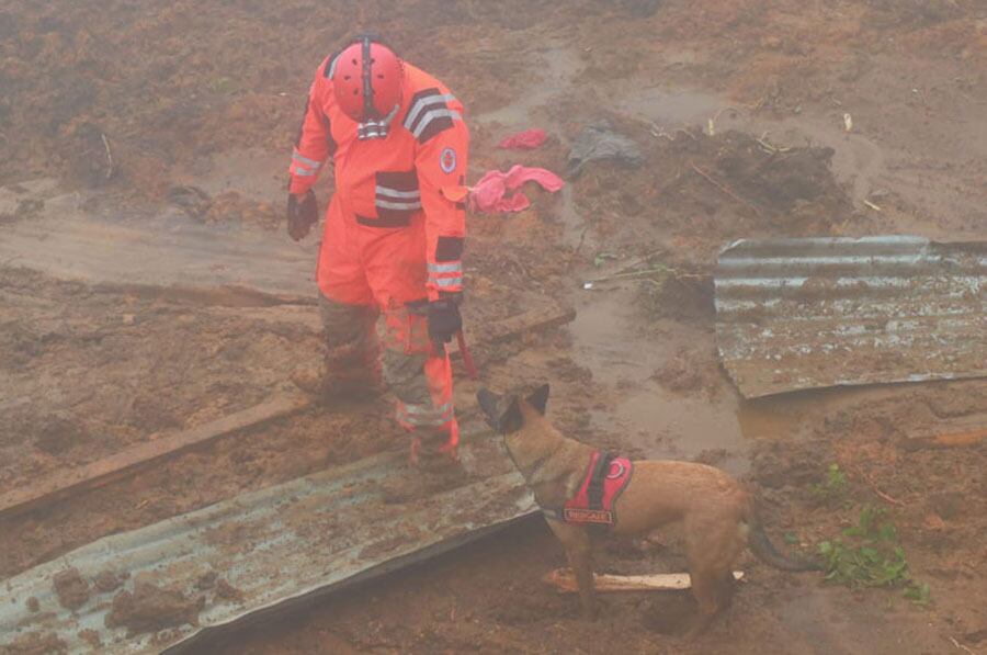La perra “Maya Roger“, que forma parte de la Patrulla Canina de los Bomberos Voluntarios, localizó los cuerpos de una niña y una señora que se encontraban soterrados en la aldea Chabaj, San Pedro Soloma, en el departamento de Huehuetenango, víctimas de la depresión tropical Eta.