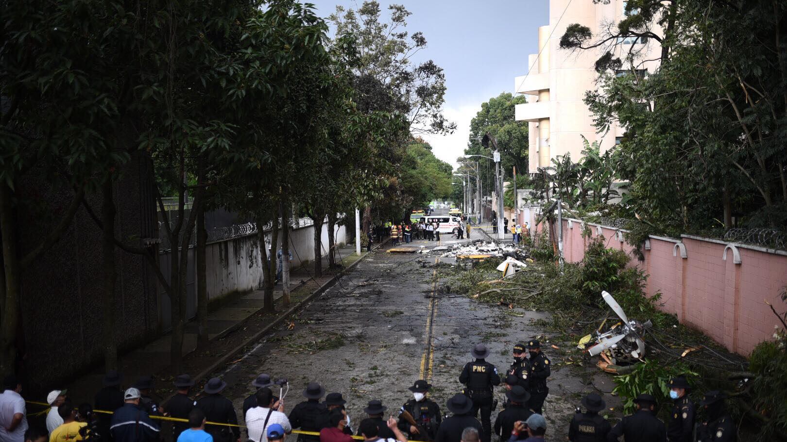 Martínez añadió que también se hicieron presentes agentes de la Policía Nacional Civil (PNC) y de la Policía Municipal de Tránsito (PMT). “A su paso, la avioneta dejó árboles destruidos y cables de tendido eléctrico en la vía pública, sobre el asfalto”, añadió.