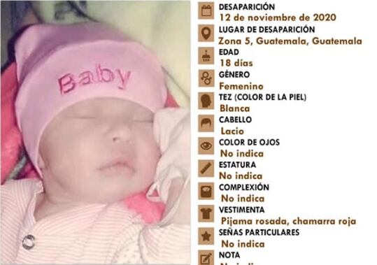 Según detalla la cuenta del sistema Alba Keneth, la menor desapareció en la zona 5 capitalina, vestía una pijama rosada y llevaba una frazada de color rojo.